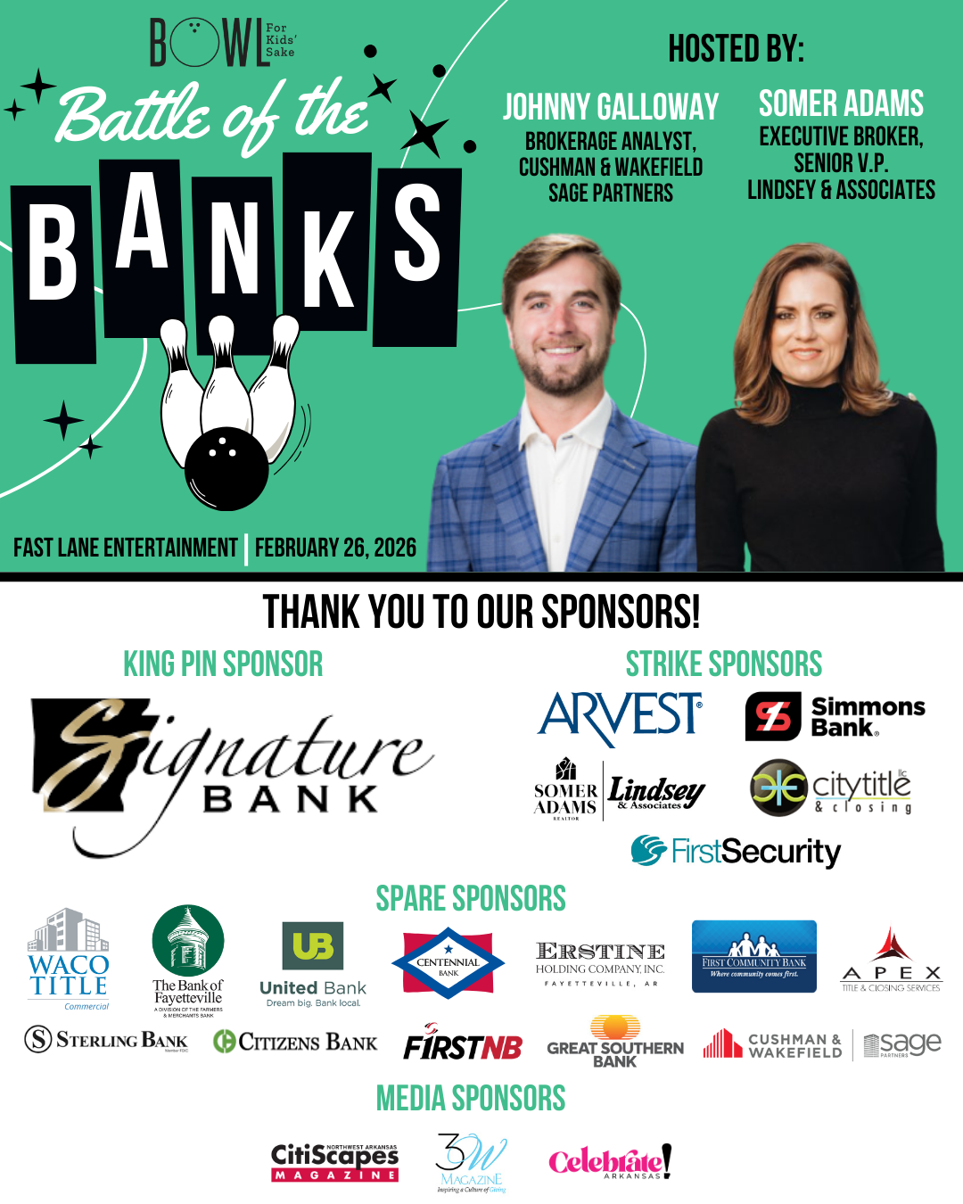 Battle of the Banks has become a signature event for BBBS NWA for the past decade, and 100% of funds raised at this event stay in NWA to support the 1,500+ children, families and volunteers who will be served by our program this year.